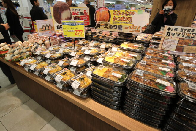 1階は「ショートタイムショッピング」に対応したフロア構成となっている 。入口付近に強力な惣菜コーナーを配置し、ロースカツ重(277円)や自家製おはぎ(223円)といった、トライアルが誇る高コスパ・高品質なPB「おいしくなれ!」を大々的に展開 。仕事帰りの単身者や忙しい主婦層が、短時間で「今日の食事」を完結できるレイアウトである 。