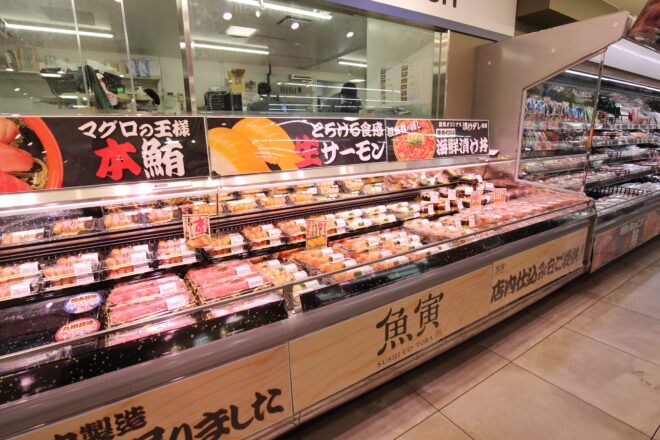 2階は、生鮮三品(青果・鮮魚・精肉)を中心としたフロアだ 。特筆すべきは、精肉カテゴリーをインストア加工に切り替え、鮮度を大幅に向上させた点である 。また、鮮魚においても生食(寿司)を最大強化するなど、西友時代の弱点であった「生鮮の集客力」を徹底的に補強しようとしている 。1号店の花小金井店での知見を活かし、2階フロアへの送客を強化することで、店舗全体の滞在時間と客単価の向上を狙っている 。