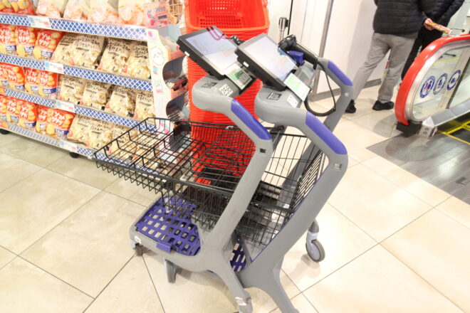 店内には、タブレットとバーコードリーダーを搭載したセルフレジ機能付き買い物カート、通称「レジカート」が60台導入されている 。専用プリペイドカードをスキャンして利用するこのシステムは、お客様が自らスキャンしながら買い物を進め、専用ゲートを通過するだけで決済が完了する 。これにより、GMSの慢性的な課題であった「レジ待ち」を解消すると同時に、非接触・キャッシュレスという現代のニーズに応えている 。